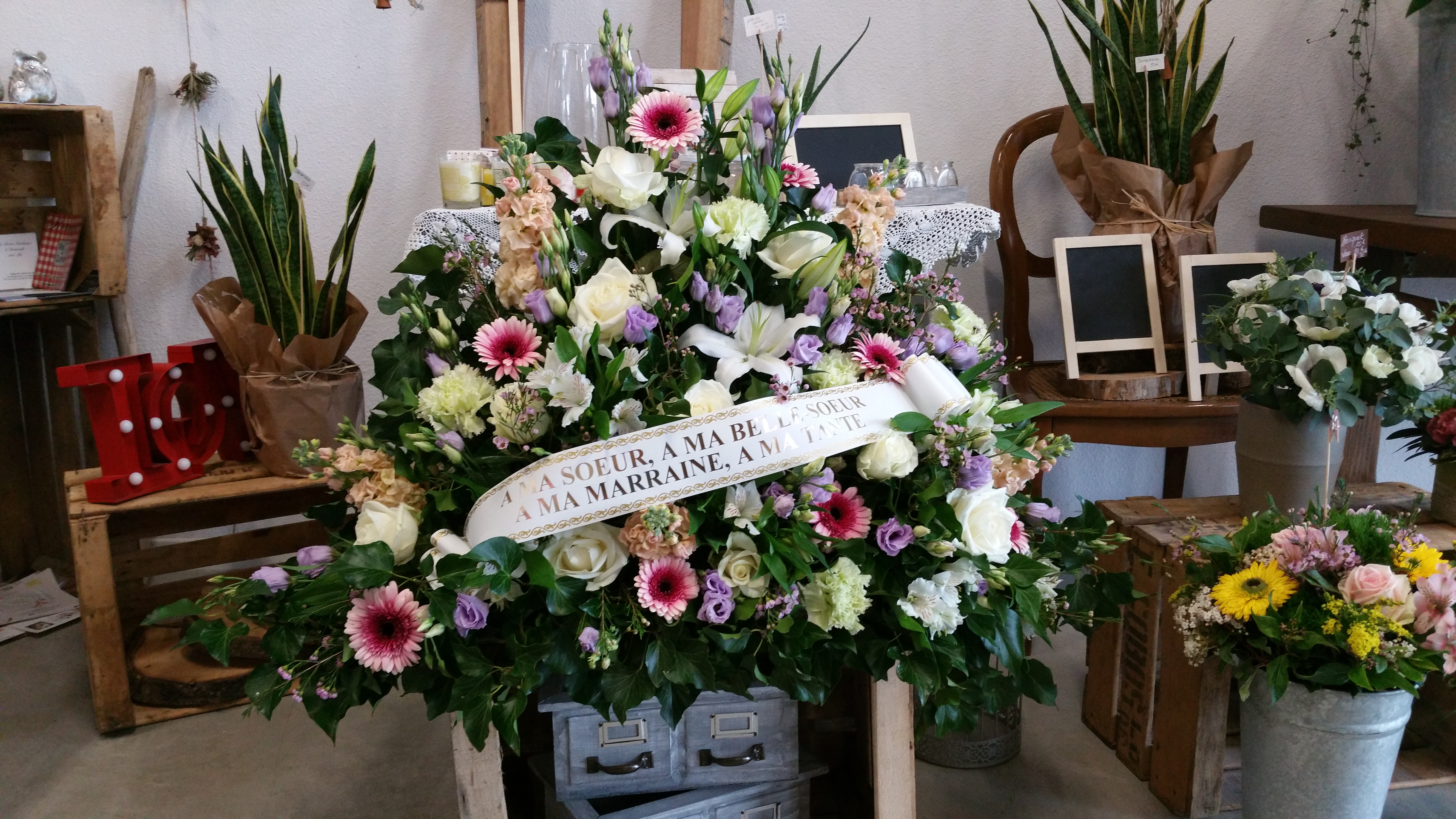 Et pour vous assister au mieux dans ces moments difficiles, nous vous proposons de livrer vos fleurs et compositions sur le lieu de votre choix (lieu de culte, salon funéraire, crématorium ou cimetière).