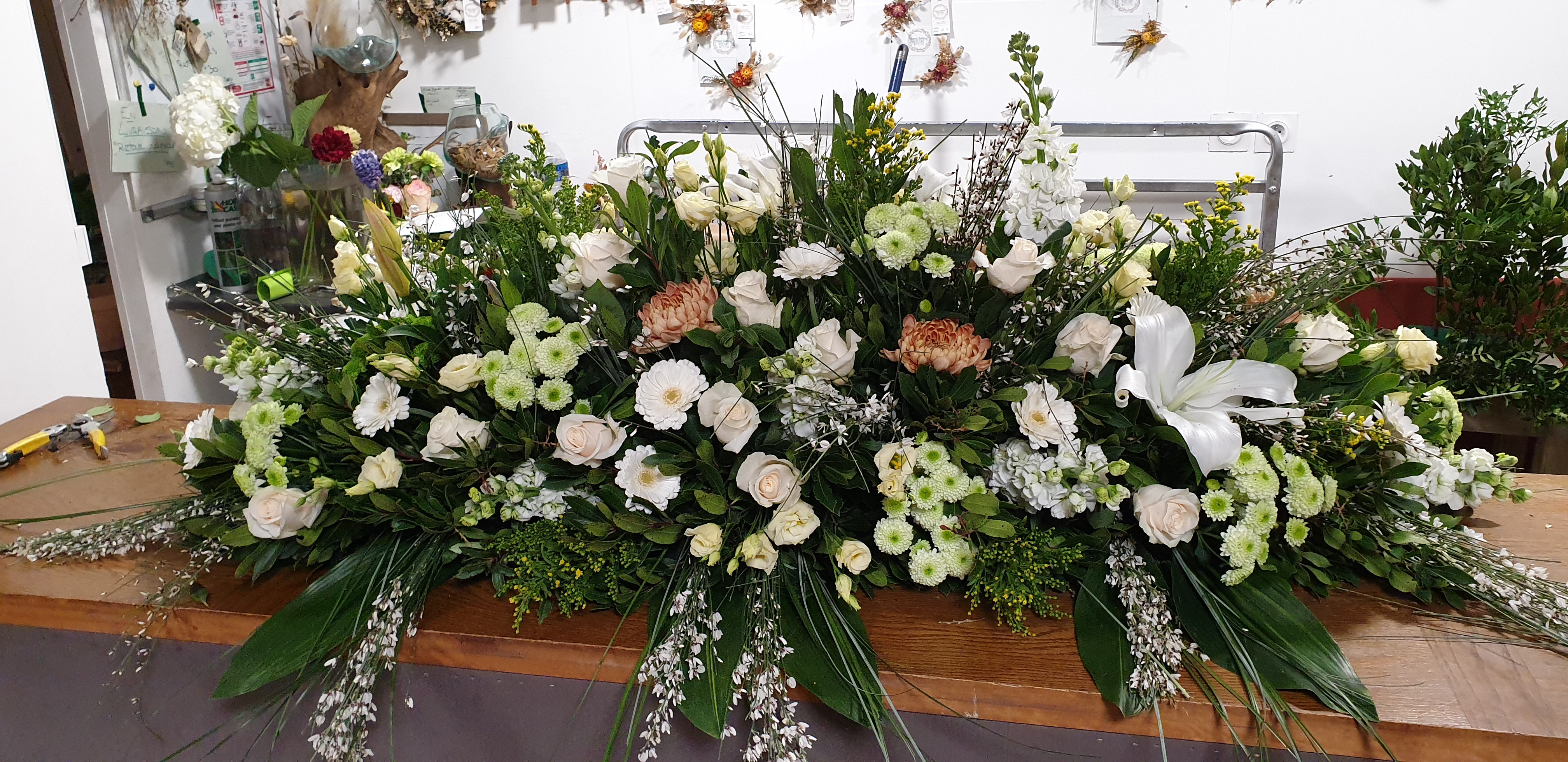 Nous vous aiderons et vous conseillerons sur les compositions florales les plus adaptées parmi bouquets, dessus de cercueil, devant de tombe, couronnes, croix, coussins de fleurs ronds, coniques ou ovales...